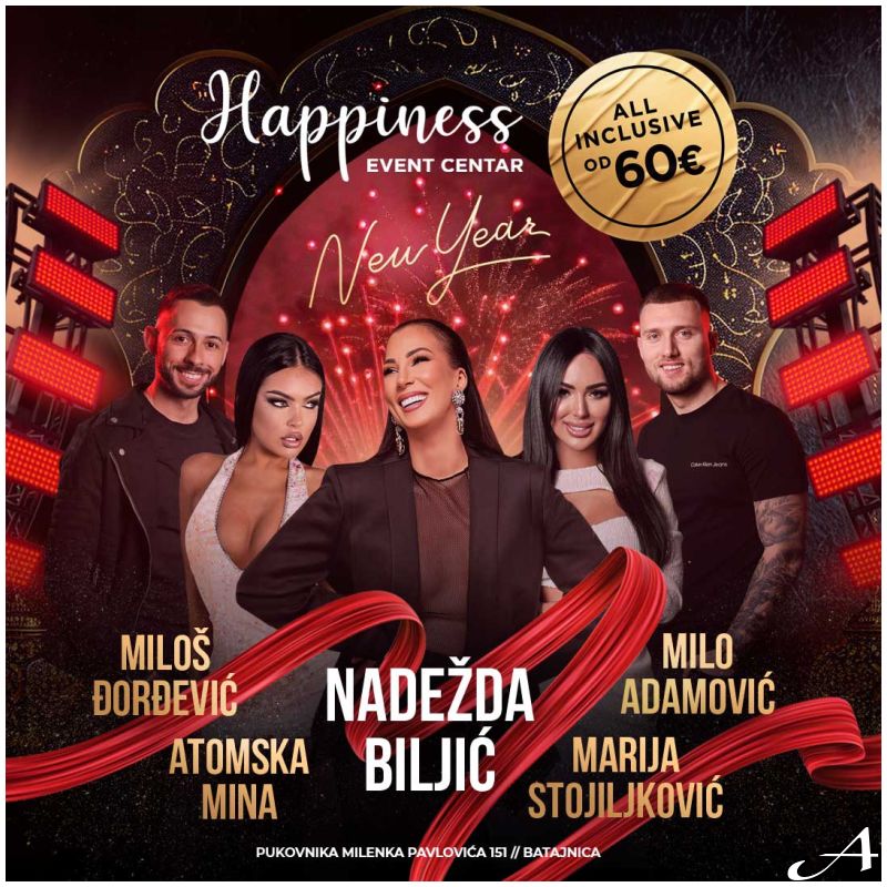 Dočekajte 2026. godinu u ambijentu gde se luksuz, muzika i dobro raspoloženje stapaju u jedinstven doživljaj - u Happiness Event Centru, mestu koje svaku noć pretvara u priču za pamćenje.