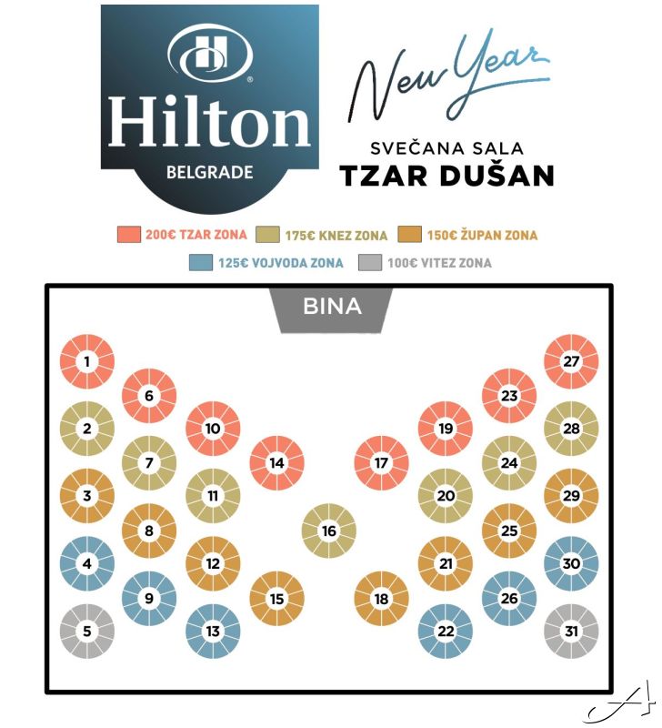 Hotel Hilton Beograd, koji je simbol elegancije i dobrog ukusa, poziva vas da Novu godinu 2026. dočekate uz muziku, osmehe i glamur, u atmosferi koja spaja vrhunski stil i emociju. Svaka minuta biće obojena toplinom, a svaki trenutak zapamćen kao deo noći koja se ne zaboravlja.