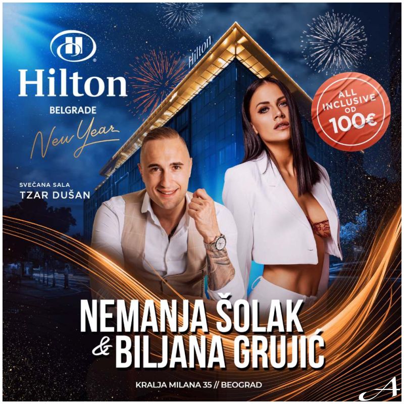 Nemanja Šolak & Biljana Grujić Nemanja Šolak i Biljana Grujić će se pobrinuti da Nova godina hotel Hilton Beograd bude magično, nezaboravno iskustvo, ispunjeno najlepšim trenucima, najvećim hitovima i novogodišnjom čarolijom! Publika je dobro upoznata sa njihovim spektakularnim nastupima, sjajnim vokalima i harizmatičnom scenskom energijom, koja svaku pesmu pretvara u pravi muzički doživljaj i garantuje atmosferu za pamćenje.