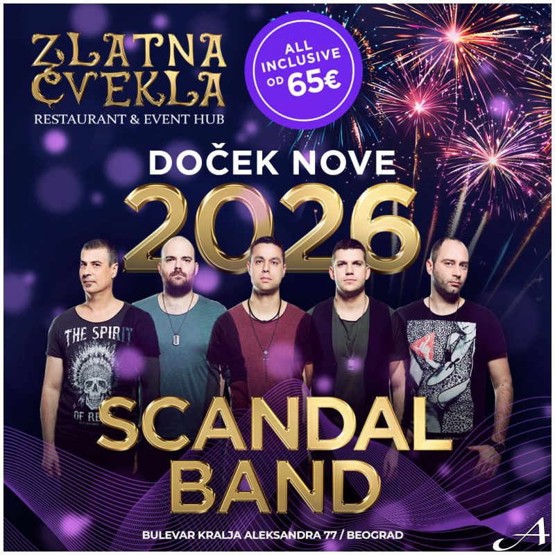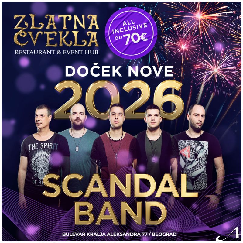 Za vrhunsku novogodišnju atmosferu biće zadužen Scandal bend - sastav koji već godinama važi za sinonim dobrog provoda i odlične energije.
