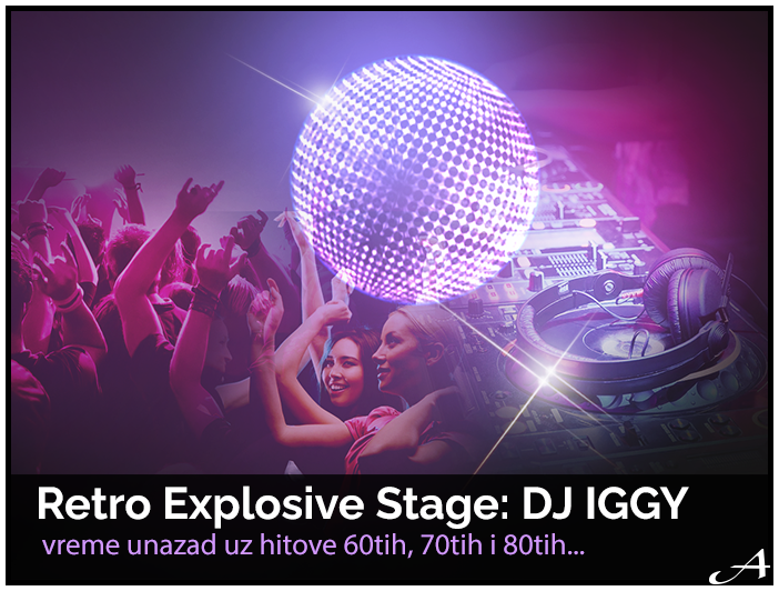 Retro Explosive Stage: DJ IGGYDJ IGGY će vas ubaciti u vremeplov i provozati kroz najveće hitove 70-ih, 80-ih i 90-ih. Biće tu svih muzičkih pravaca, i domaće (naročito Ex-YU) i strane muzike, tako da materijala ima sasvim dovoljno da celo veče slušate samo najveće hitove koji traju i danas!
